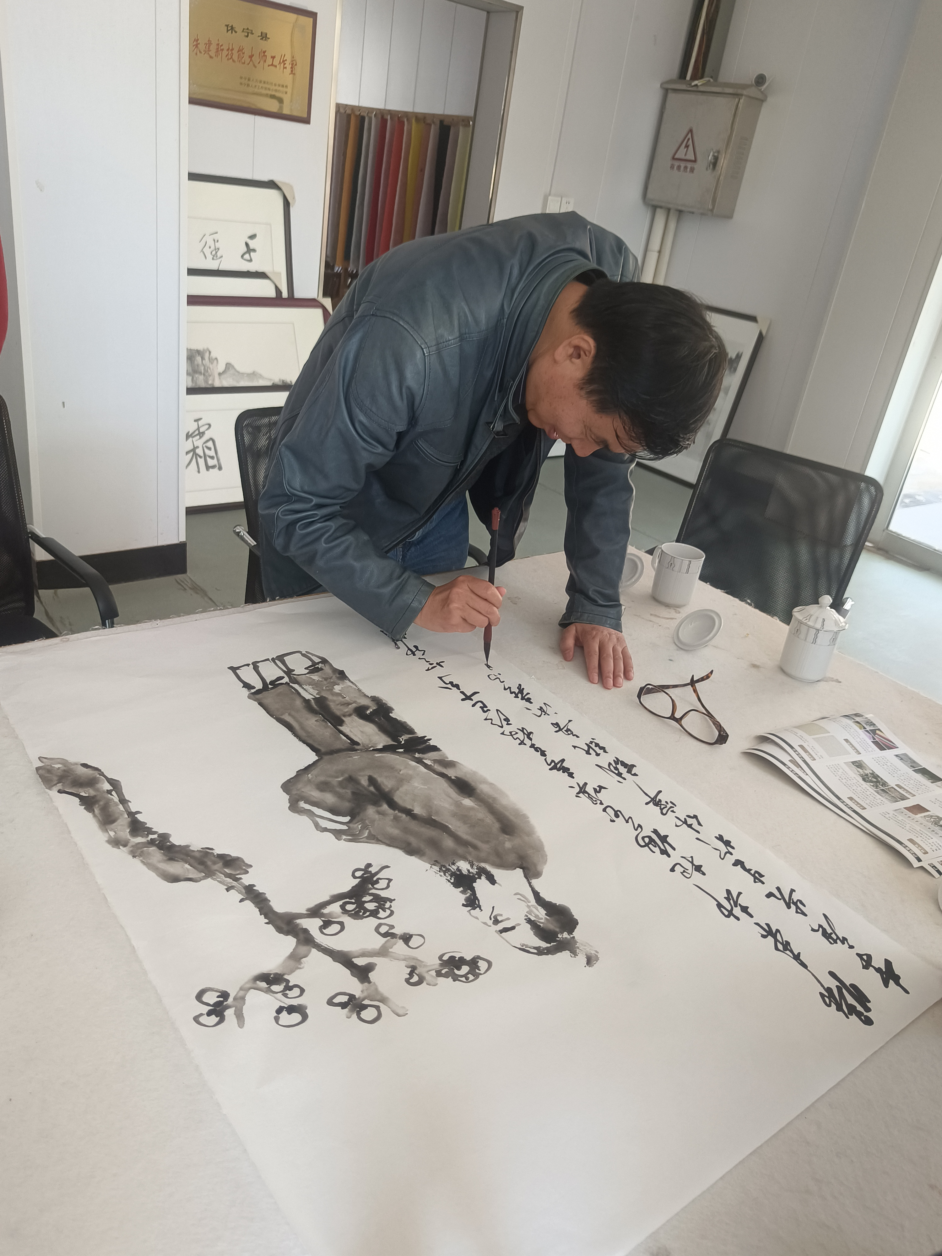 近距離觀摩大師創(chuàng)作,著名畫家李庚老師和著名文化學(xué)者、書法家王魯湘老師抽出寶貴時間來公司指導(dǎo)試筆,并為我們留下三幅珍貴墨寶,這是對我們做徽州皮紙的肯定,也是對我們的鞭策,使我們更有信心堅守敬畏之心,匠人精神,做出更好的徽州皮紙。感謝安徽書法協(xié)會會長王云龍全程陪同
